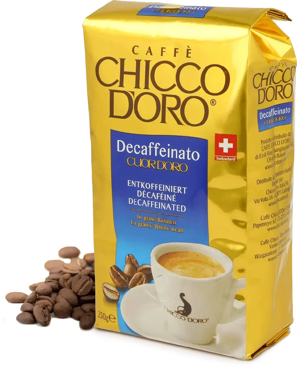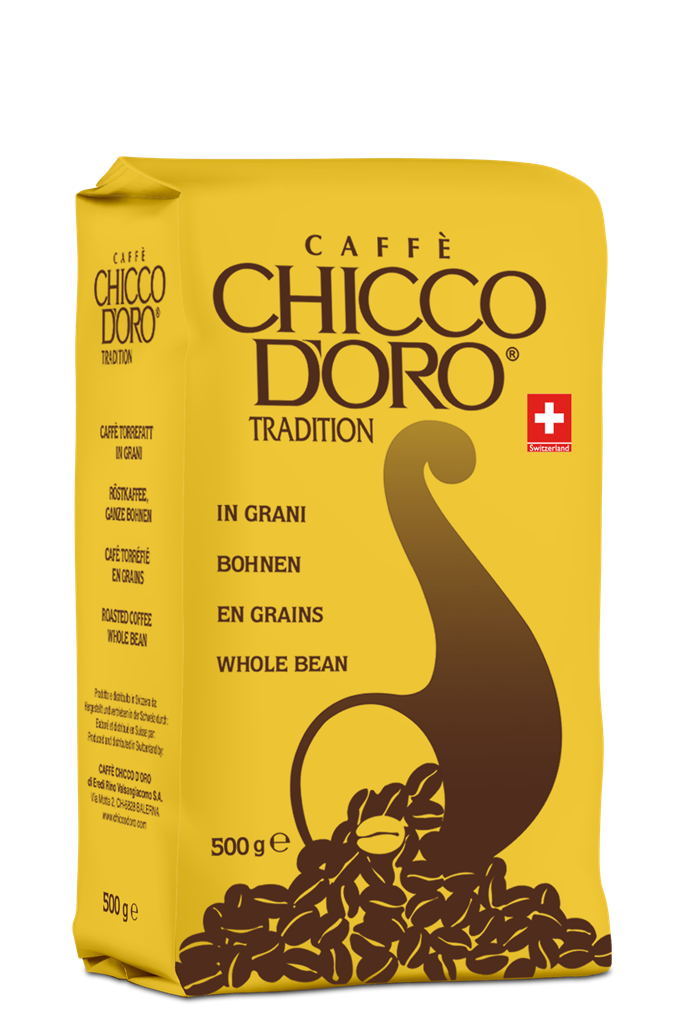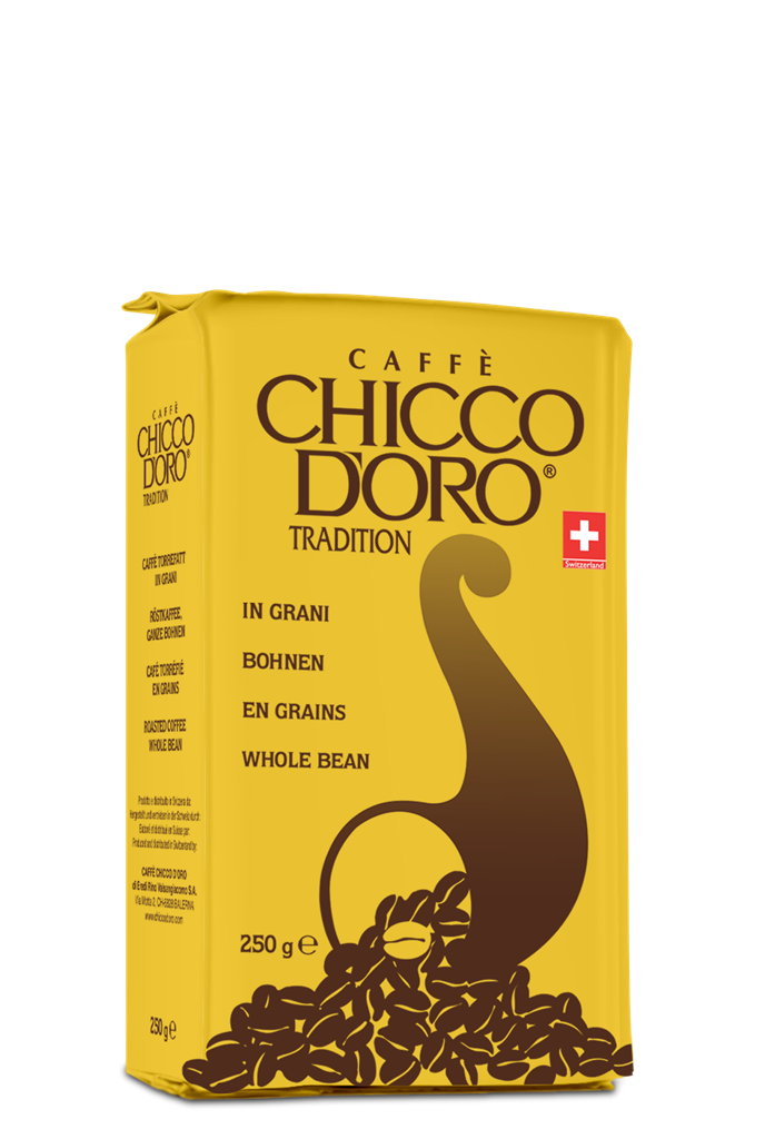 - Chicco D'ORO Tradition. Традиция совместима с качеством. Так говорят про этот кофе, и для этого есть определённые основания несмотря на то, что секрет обжарки хранится в строгой тайне. Вкус кофе долго остаётся во рту, а мягкий аромат, с точной сбалансированной легкой кислинкой, напоминает о том, что он изготовлен со швейцарской точностью. Ведь длится обжарка ровно 21 минуту. Легенда это или нет, судить только человеку с чашкой кофе в руках.