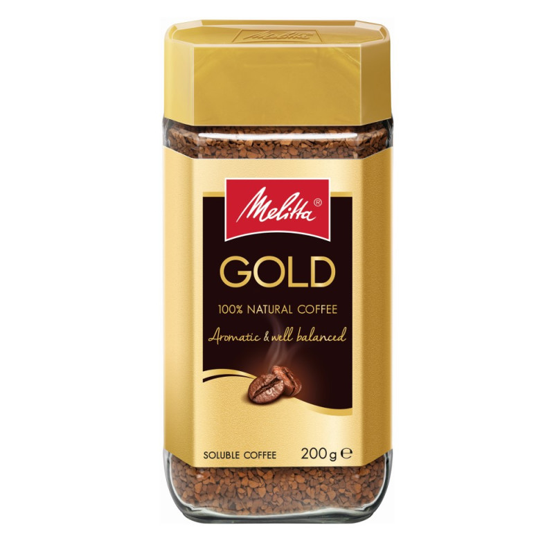 Кофе Растворимый Melitta Gold 200g — имеет сбалансированный мягкий бархатистый вкус с тонким кофейным ароматом. Он быстро растворяется и отлично сочетается с десертами.